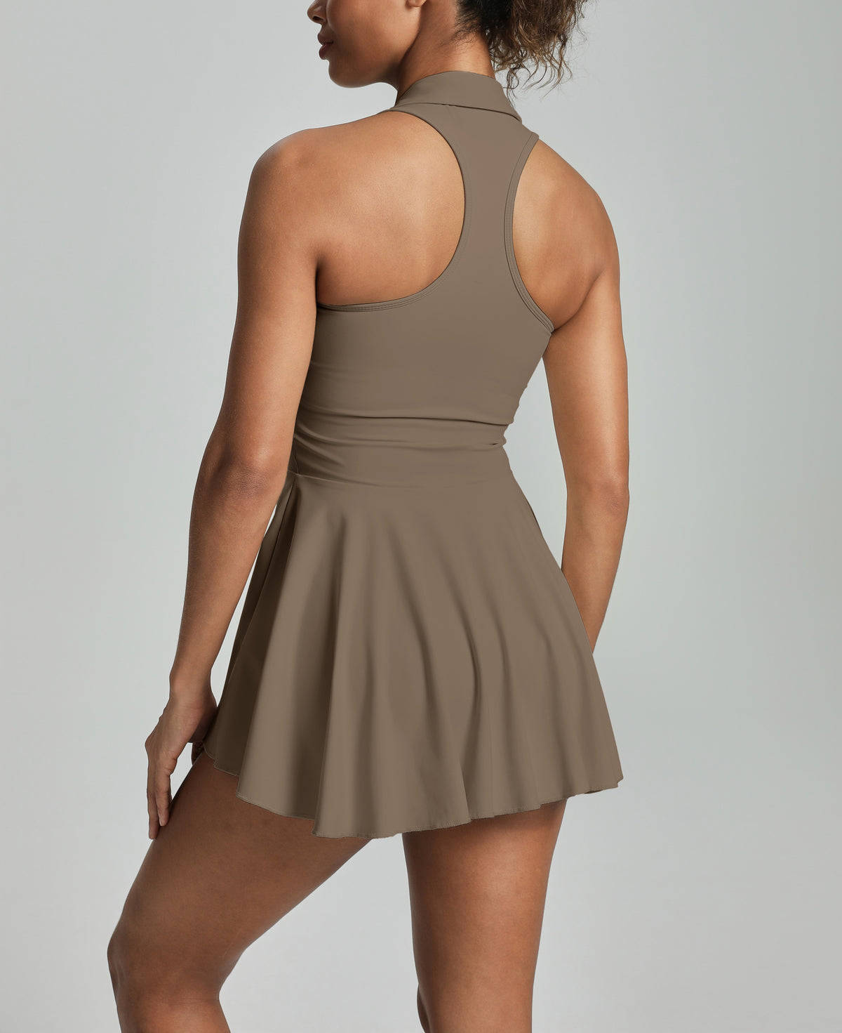 iVery Pleated Tennis Dress with Collar - Warm Sand / S